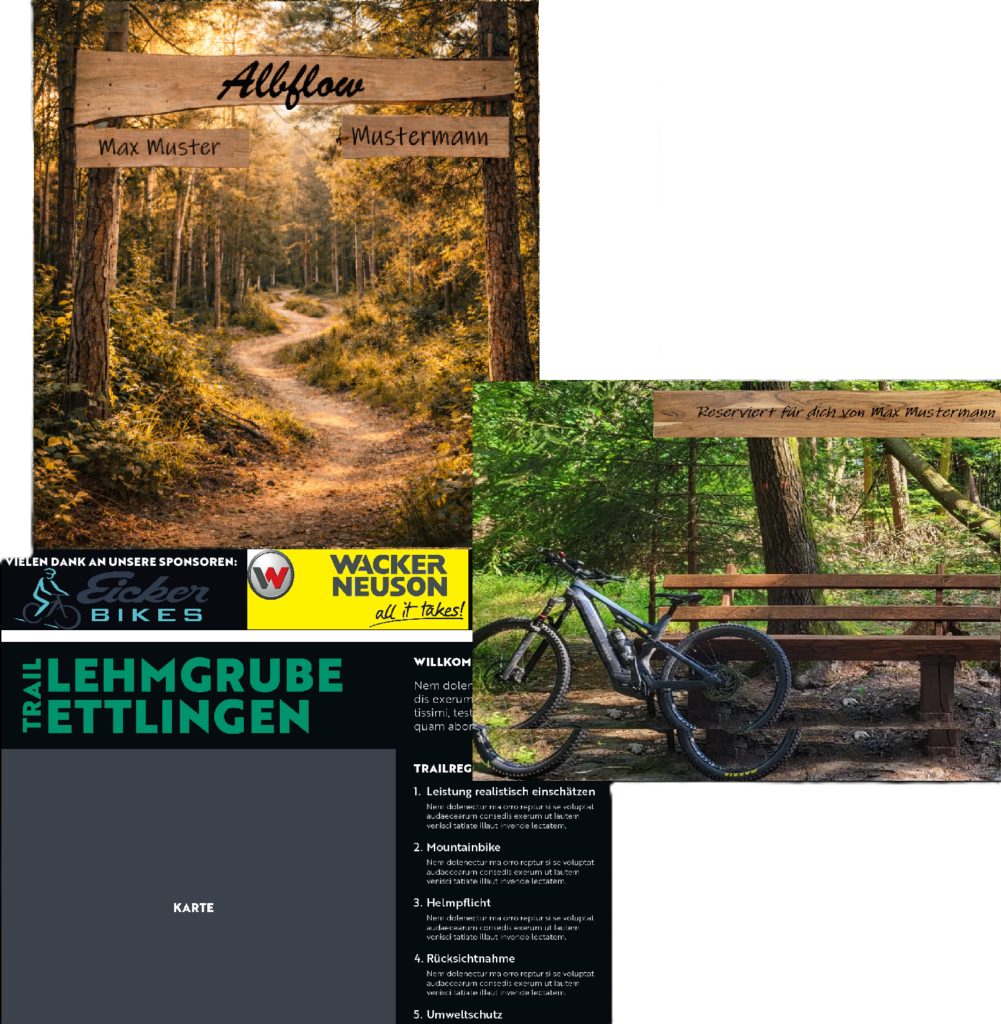 - Sponsorennennung auf 6 Infotafeln auf allen Trails rund umKarlsruhe und Ettlingen