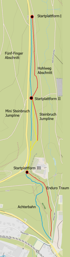 Drei markante Ein- und Ausfahrten in einen alten Hohlweg: steil, technisch und mit optionalen Side-Hits – dazwischen Schwungpassagen.